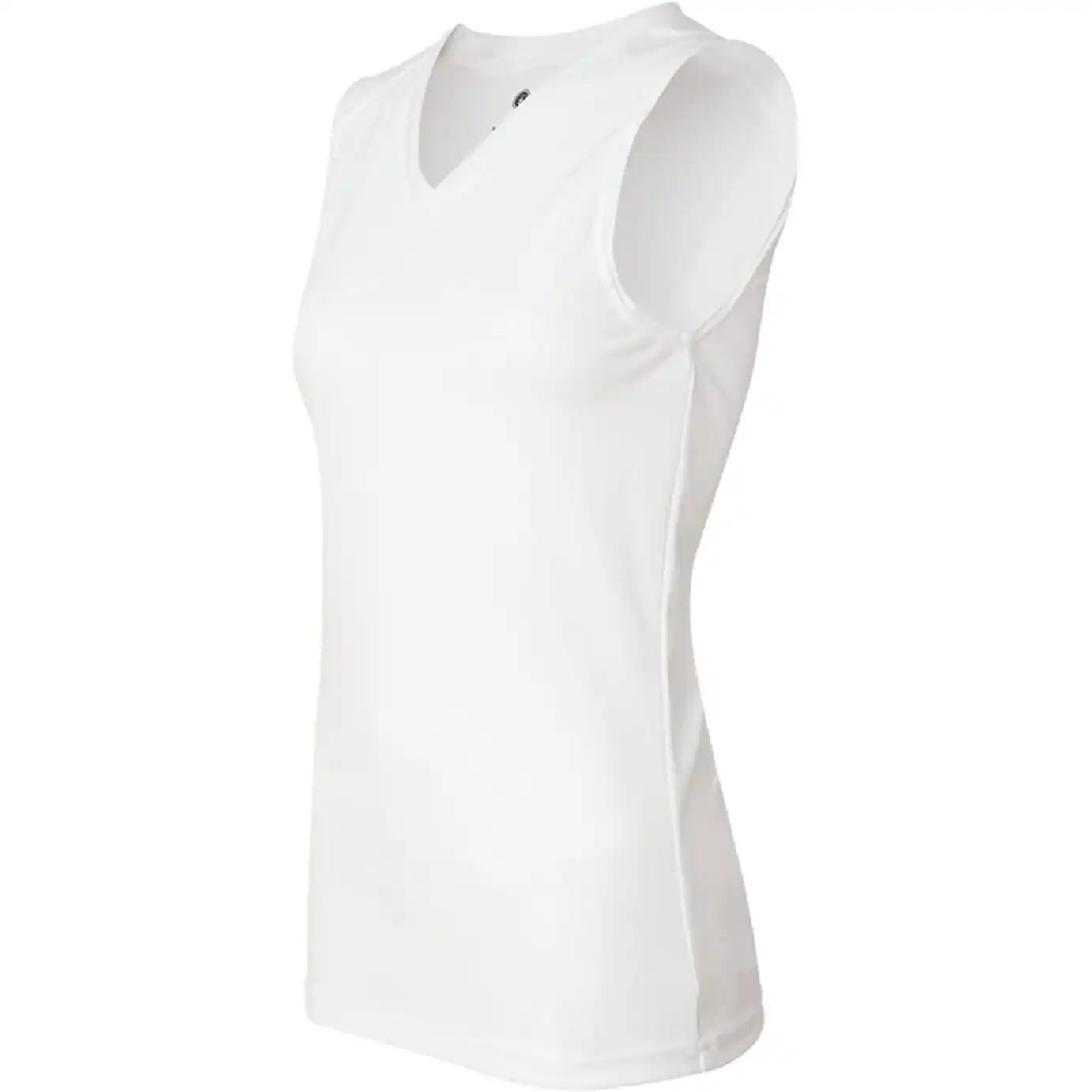 This sleeveless top is simple and elegant. In pure white, it shows a pure temperament. The V-neck design adds a sense of fashion, fitting the body shape and showing an elegant posture. The fabric is comfortable and breathable, suitable for sports or daily wear. It can be easily matched with various bottoms, creating a fresh and capable look for you. It is a versatile item in the wardrobe.